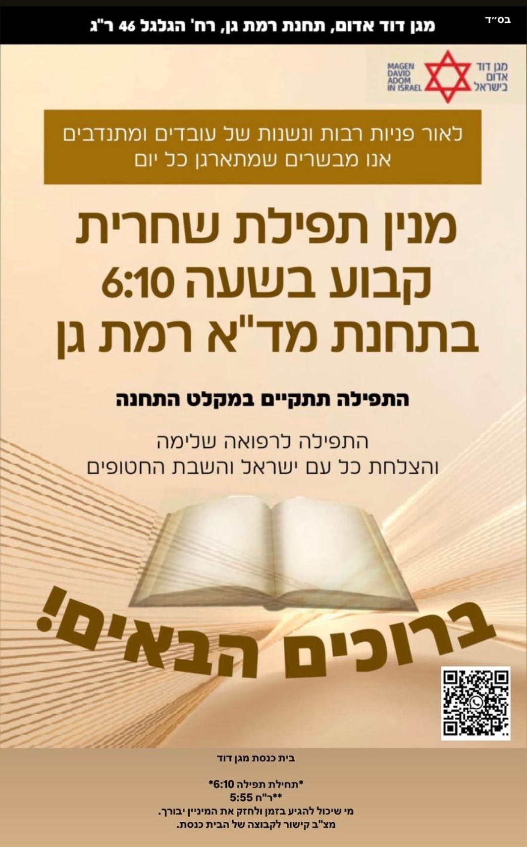 *ככל שלא יצליחו להגיע ליעד, הכספים ישמשו לטובת רכישת ציוד ותחזוקת בית הכנסת לרווחת המתפללים.