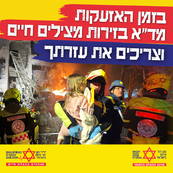 אנו בידידי מד״א נחושים לאפשר לארגון להמשיך לפעול ברמת המקצועיות הגבוהה ביותר גם בעיצומה של המלחמה, ועל כן אנו פונים אליכם בבקשה לשותפות מיידית במאמץ החירום כבר היום.